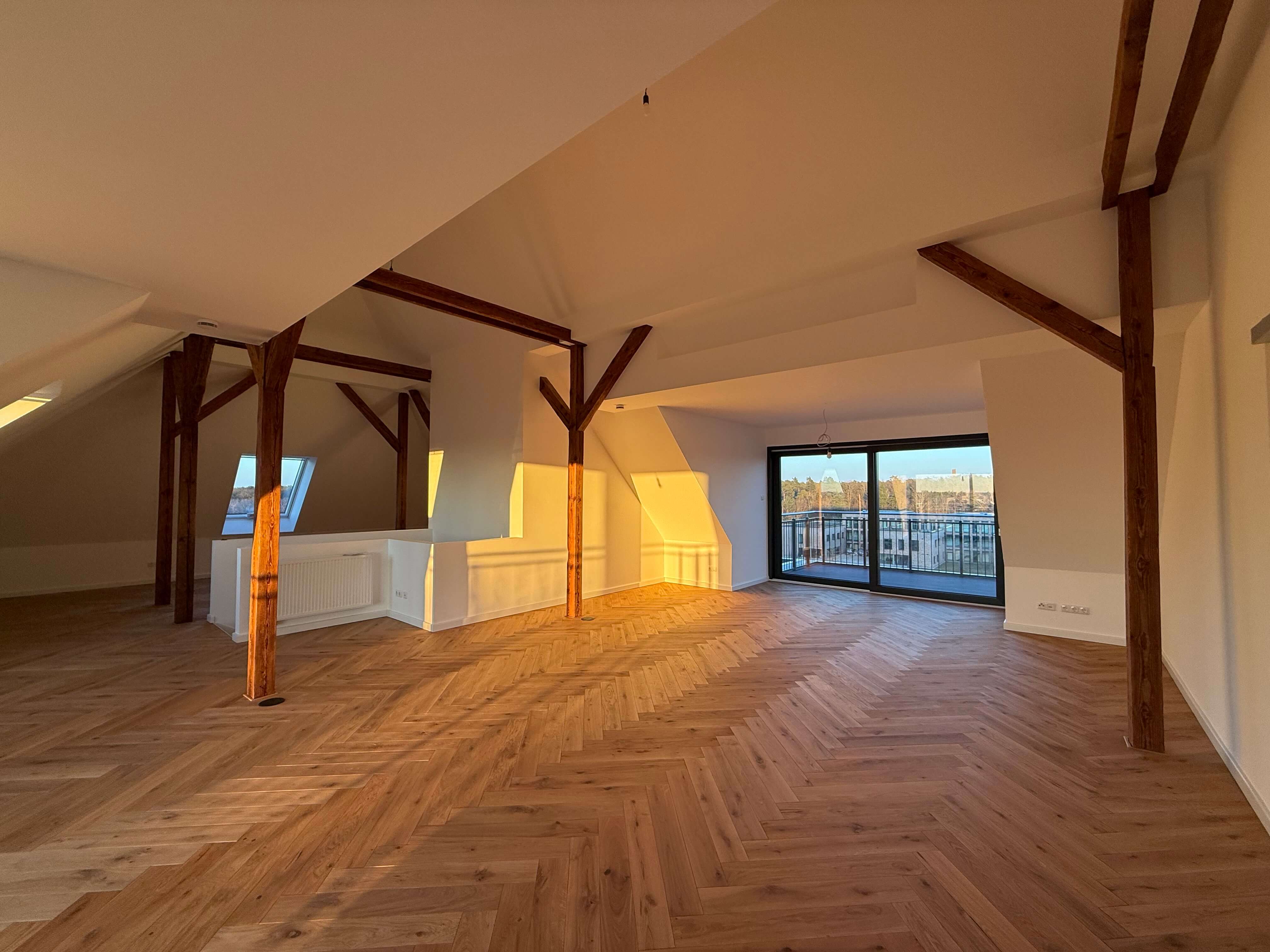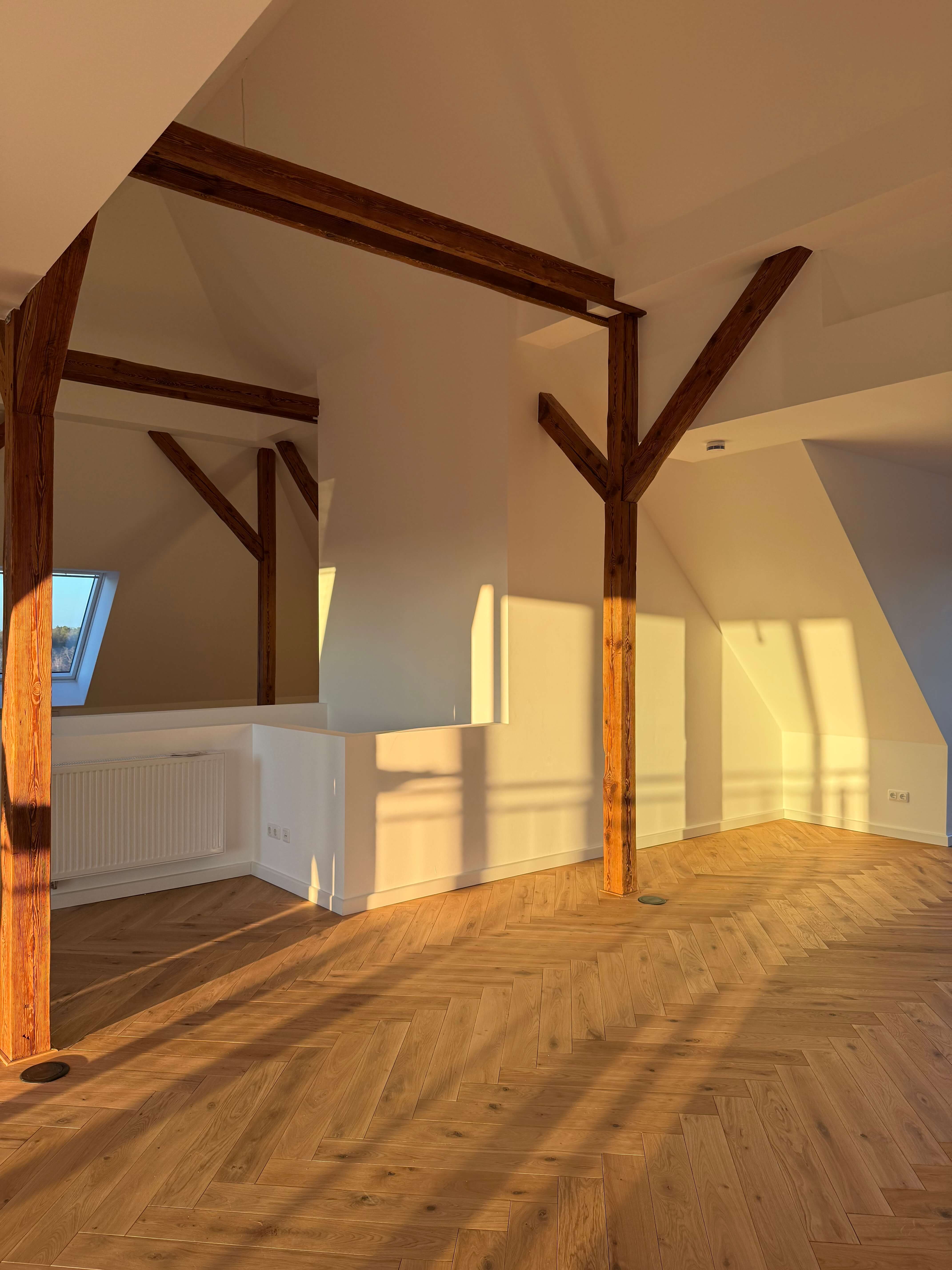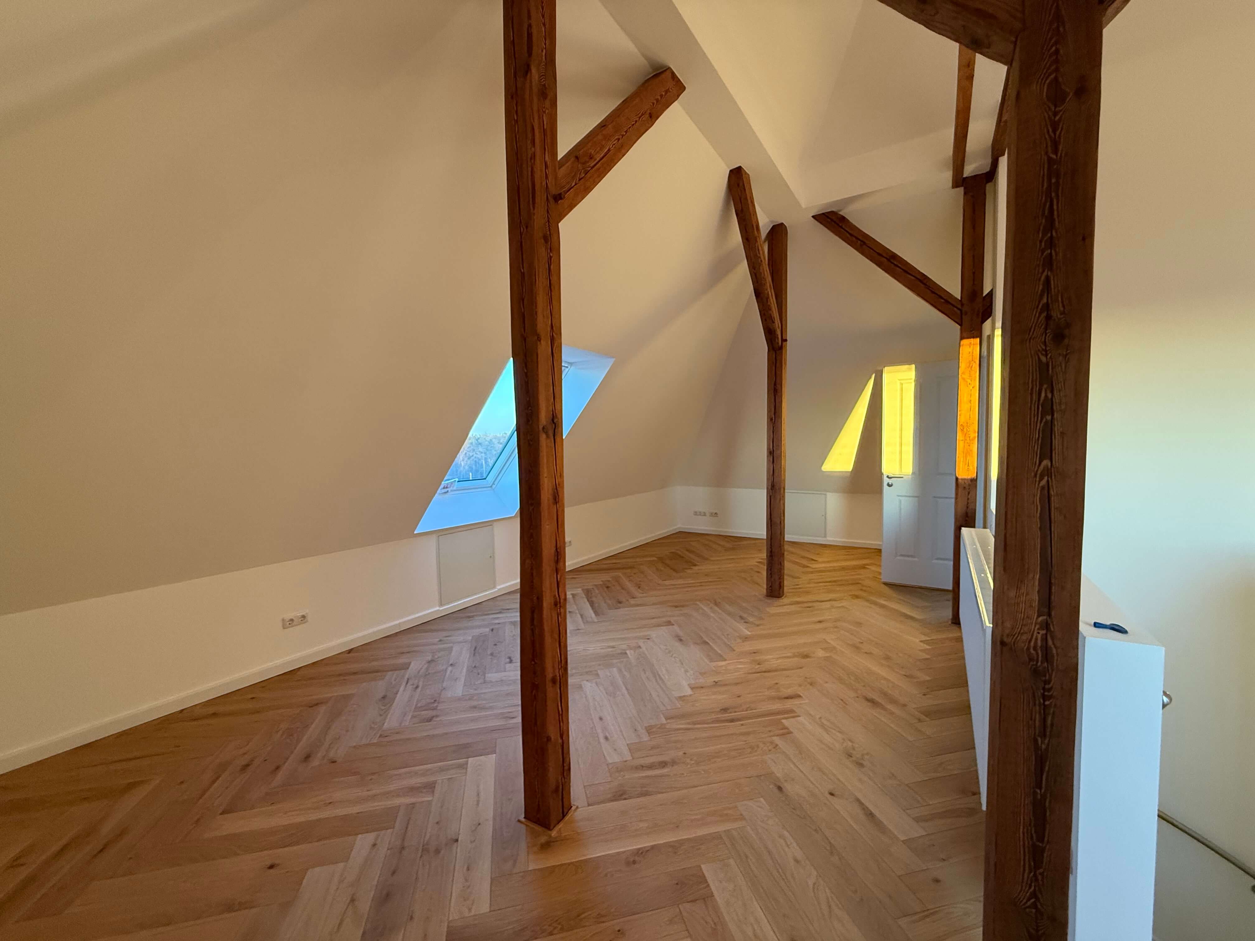 Auf ca. 134 m² entfaltet sich ein Zuhause, das mit hochwertigen Materialien, edlem Fischgrätparkett und einer Ausstattung auf höchstem Niveau begeistert. Die hohen Decken im Dachgeschoss und die frei stehenden Holzbalken schenken der Wohnung einen warmen Loft-Charakter – großzügig, stilvoll und mit genau der richtigen Portion Gemütlichkeit.