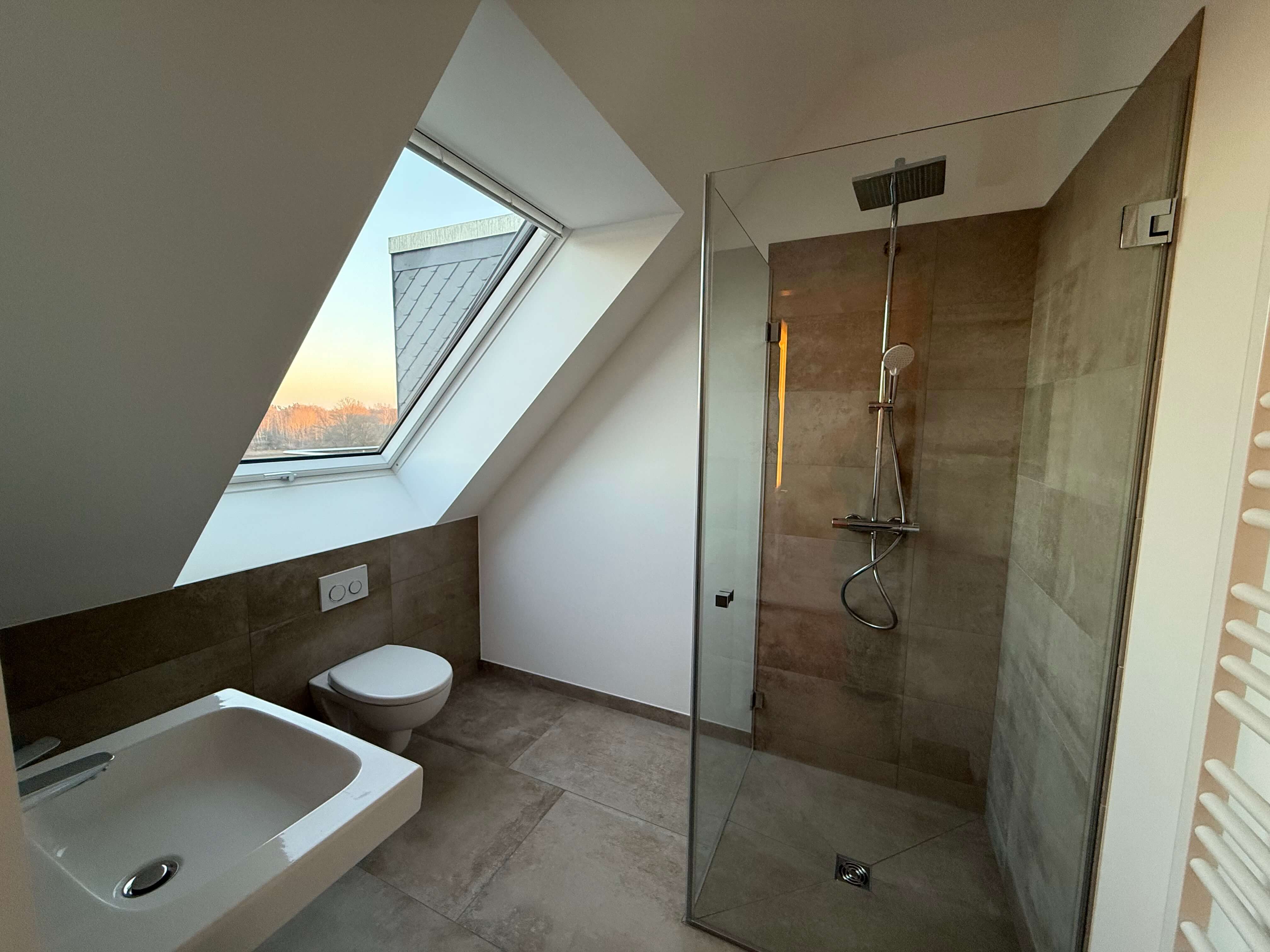 - Ausstattung des Bades Dusche Badewanne Fenster