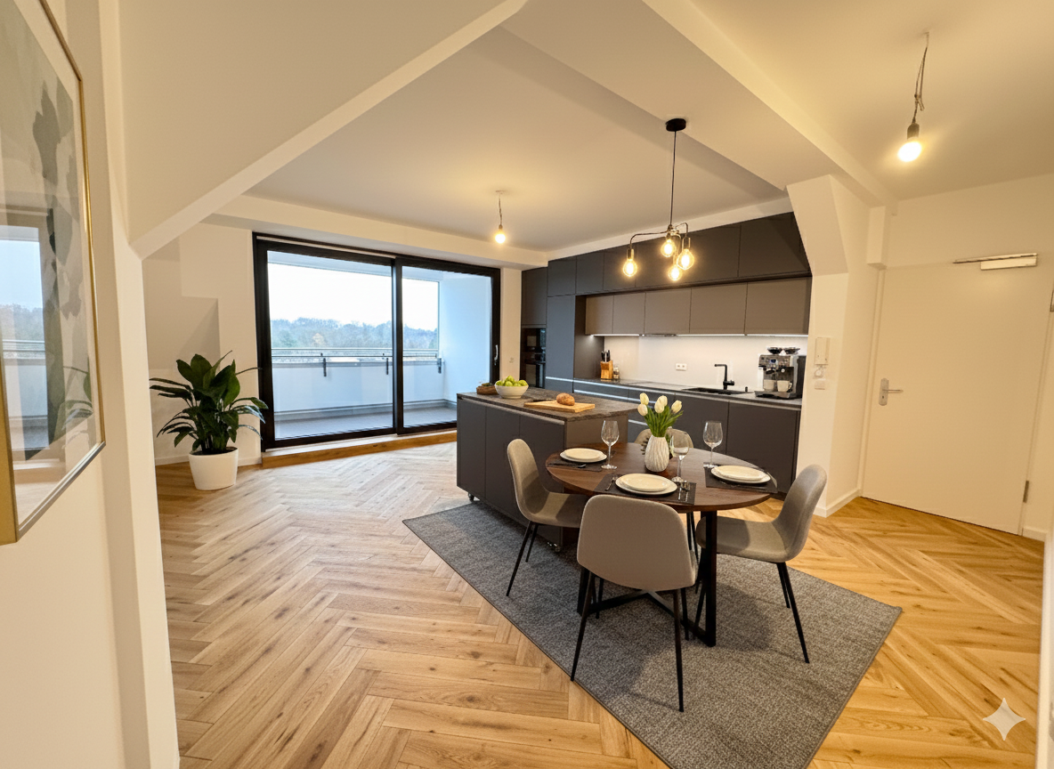 Stellen Sie sich vor, Sie kommen nach Hause, schließen die Tür hinter sich und plötzlich fühlt sich alles ein kleines bisschen leichter an. Diese exklusive Maisonettewohnung in Lüneburg ist nicht einfach nur ein Ort zum Wohnen. Sie ist ein Ort zum Ankommen, Durchatmen und Bleiben.