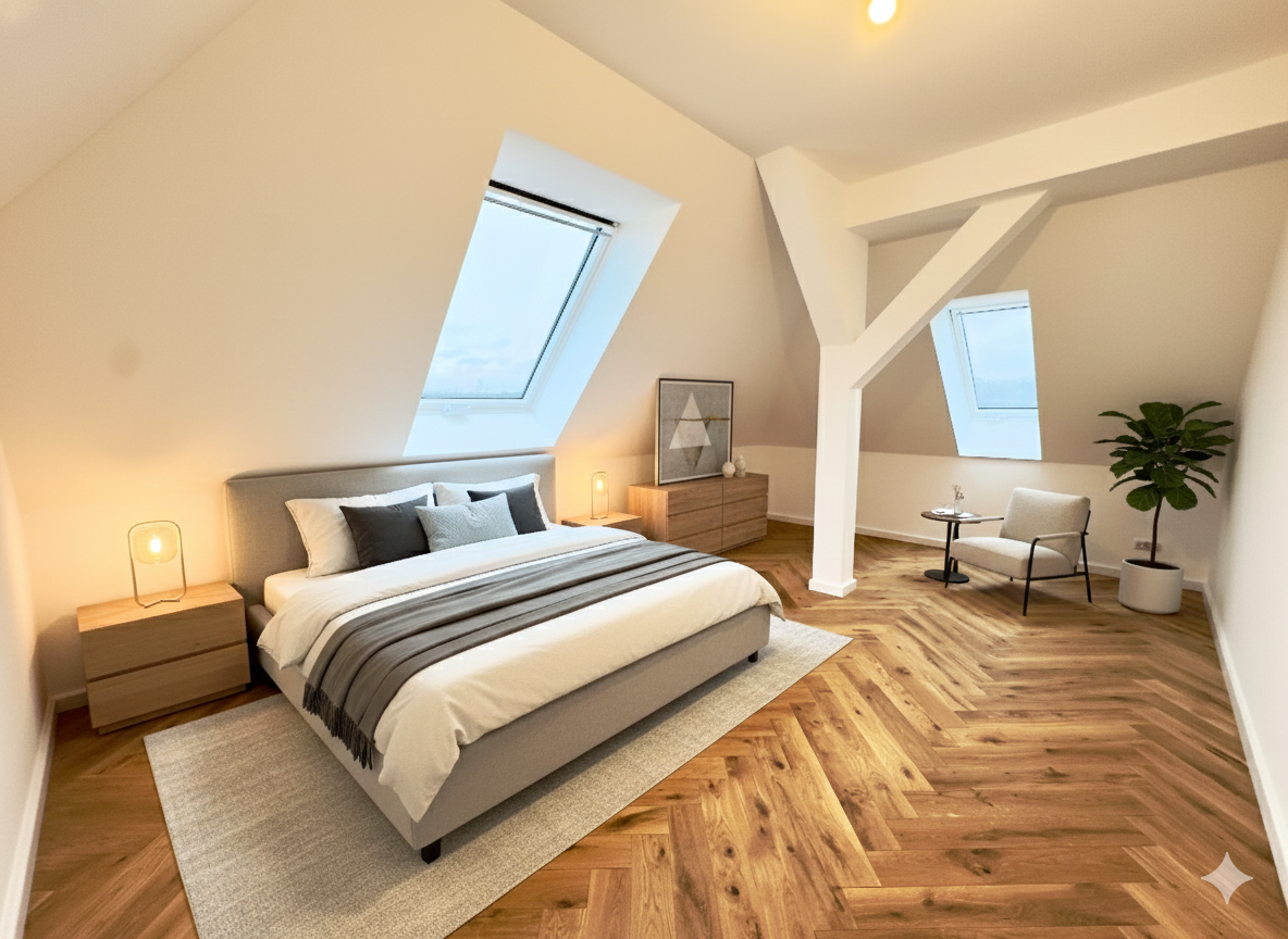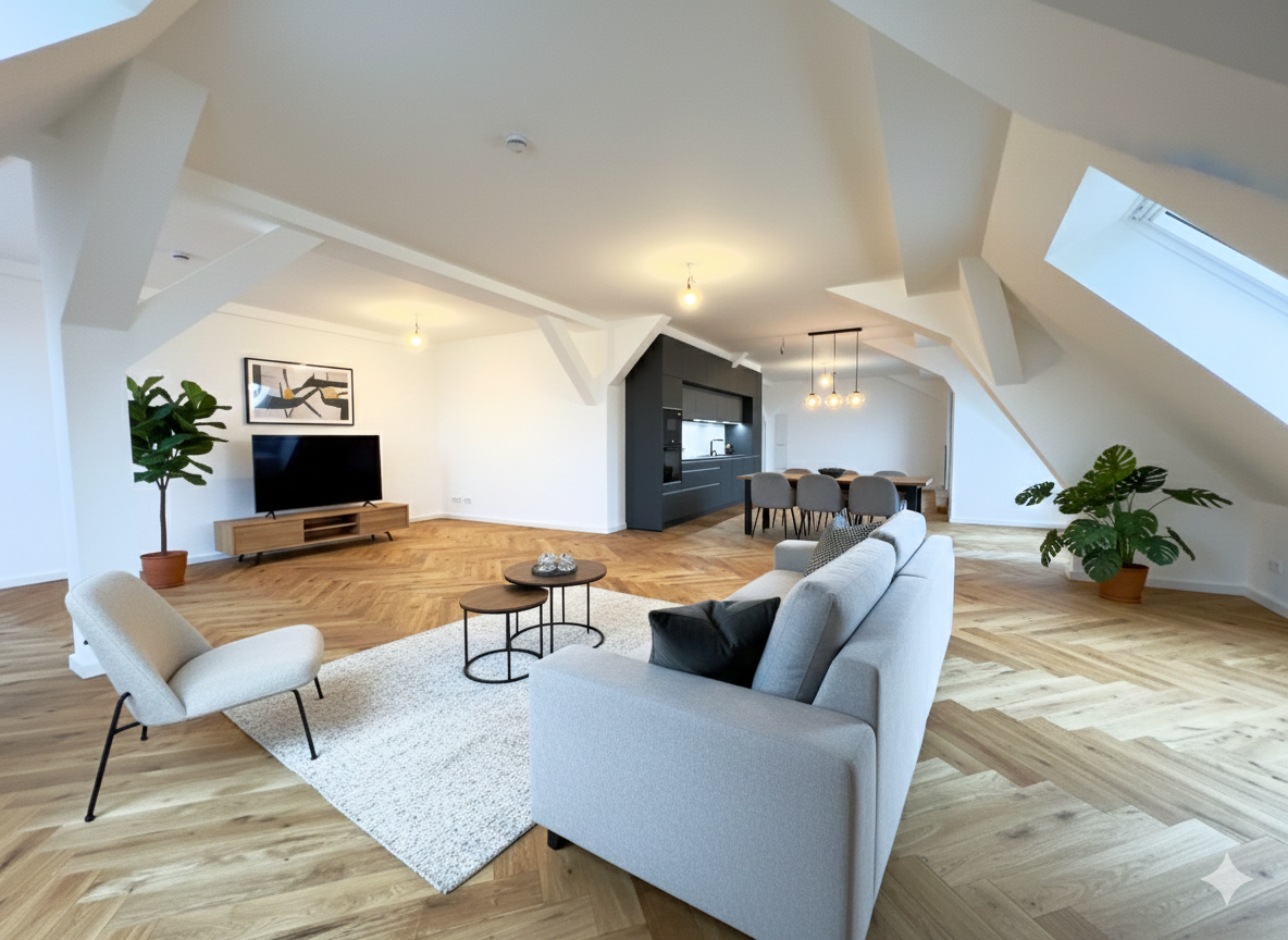 Diese außergewöhnliche Dachgeschosswohnung ist nicht nur eine Wohnung – sie ist dieses „Wow“-Gefühl, wenn man die Tür aufschließt und weiß: Genau hier will ich sein!